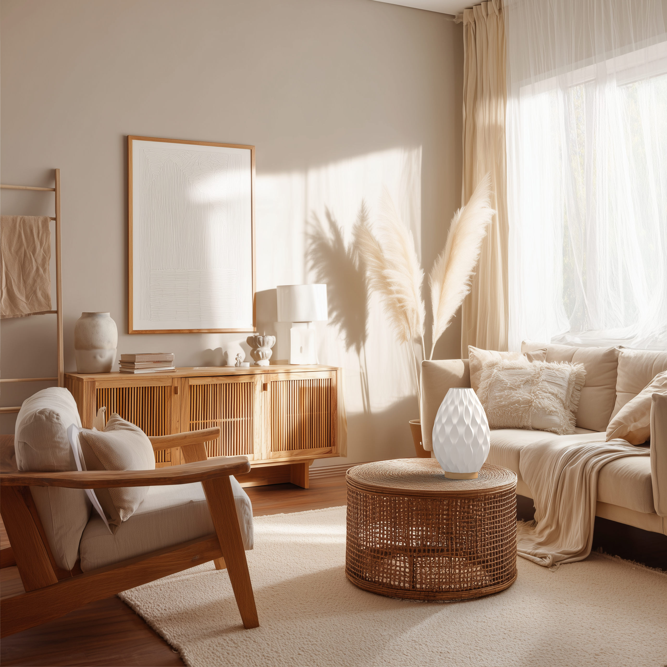 Inspirée par le mouvement de l’eau, Ondine charme par ses courbes fluides et sa lumière apaisante. Imprimée en 3D en France avec des matériaux écoresponsables, elle diffuse une lumière douce et chaleureuse qui sublime les intérieurs audacieux et raffinés.
