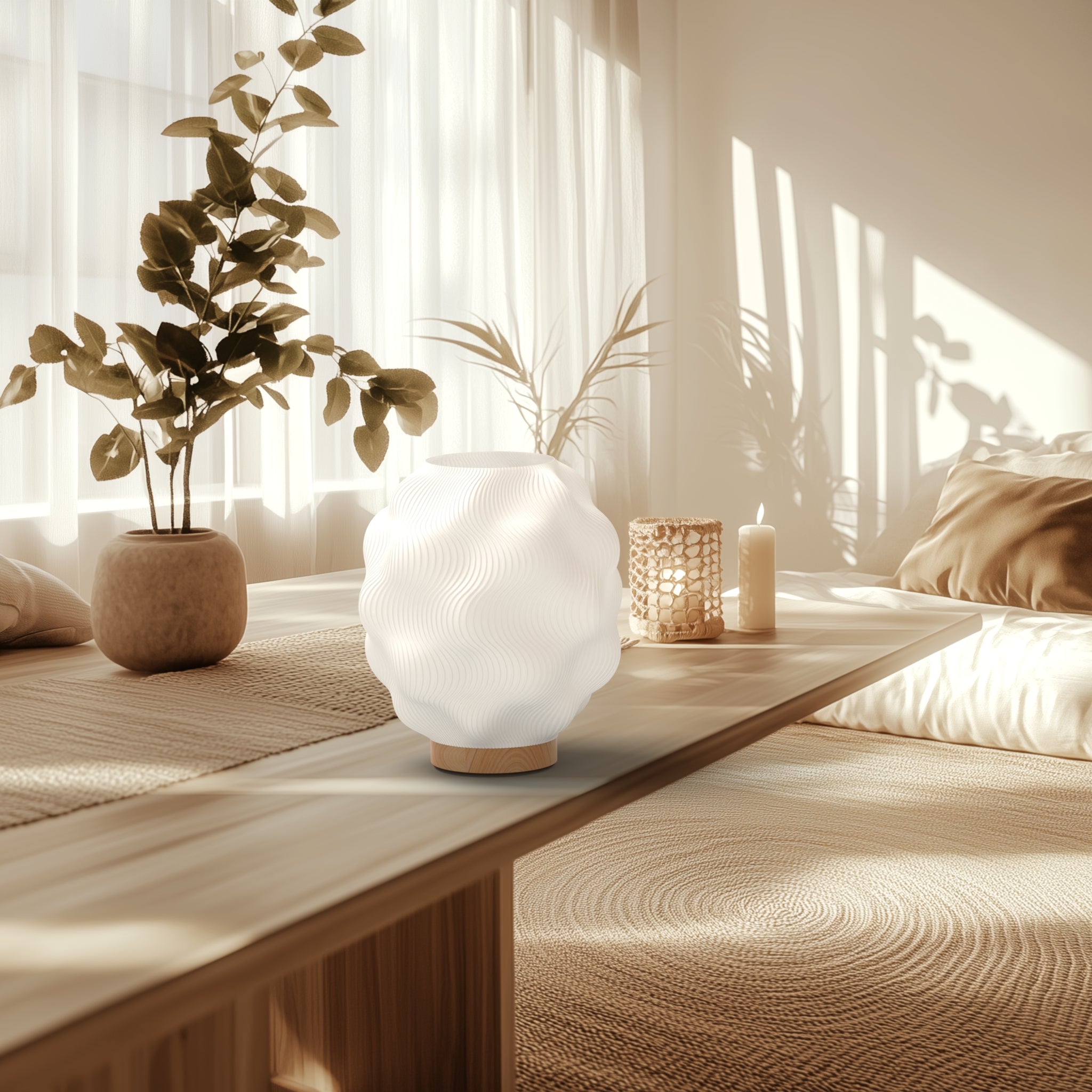 Inspirée par la légèreté des grains soufflés, Pop-Corn séduit par ses courbes généreuses et sa lumière réconfortante. Imprimée en 3D en France avec des matériaux écoresponsables, elle diffuse une lumière douce et chaleureuse qui sublime les intérieurs audacieux et raffinés.