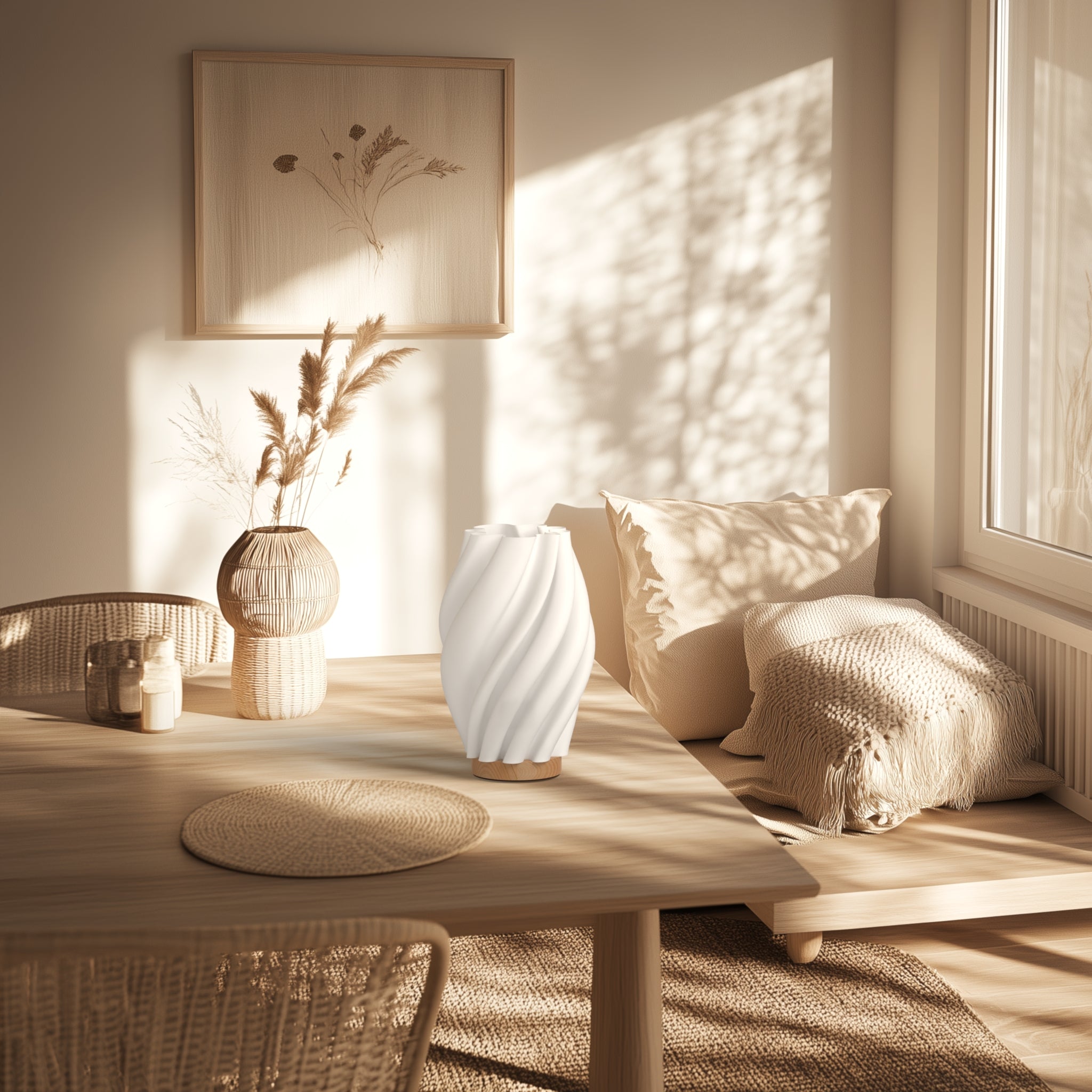 Inspirée par les formes naturelles, Spirale séduit par ses courbes fluides et son élégance intemporelle. Imprimée en 3D en France avec des matériaux écoresponsables, elle diffuse une lumière douce et chaleureuse qui sublime les intérieurs audacieux et raffinés.